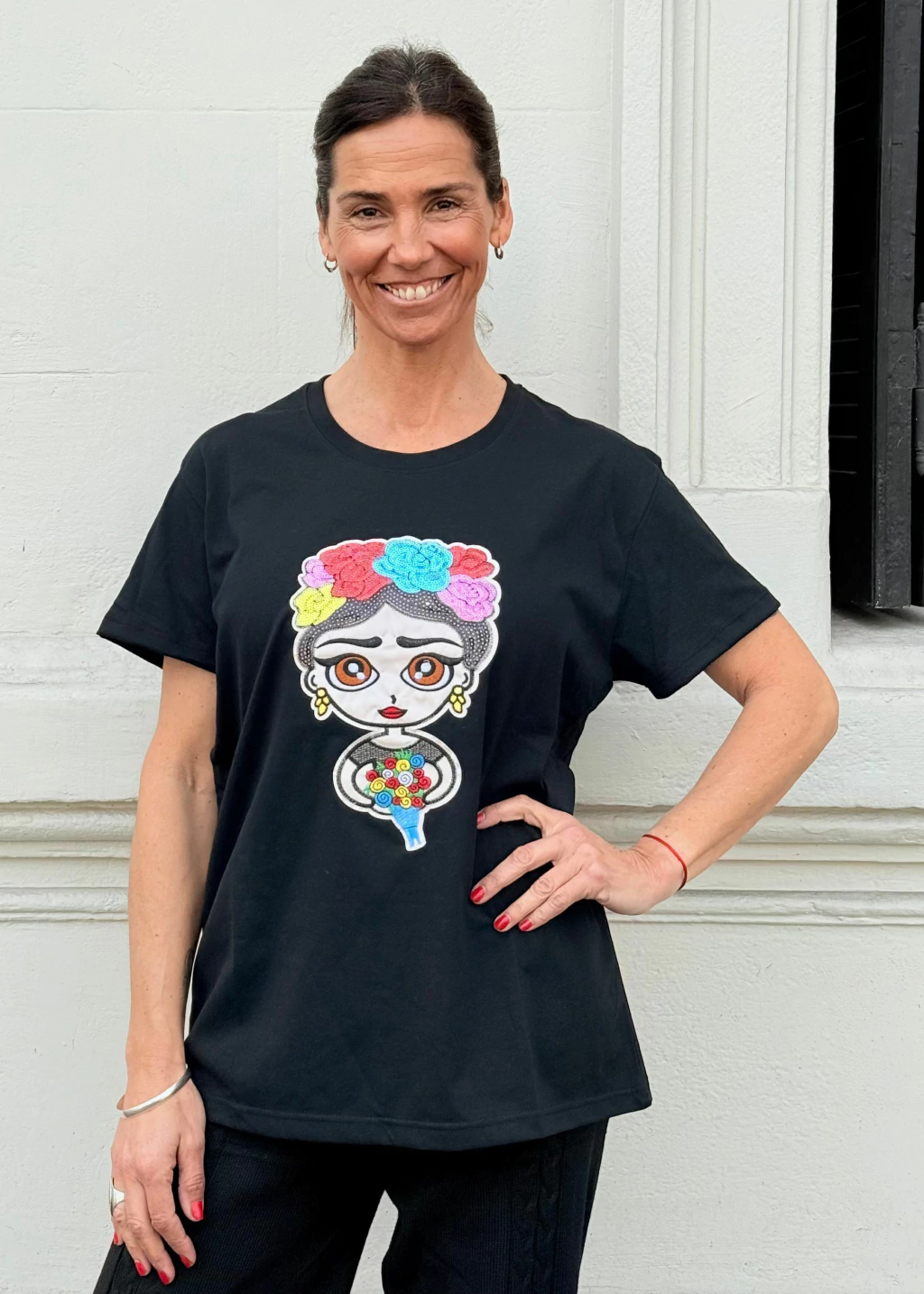 Descubrí la REMERA FRIDA, confeccionada en algodón de excelente calidad para brindarte suavidad y confort todo el día. Su hermoso bordado al frente la convierte en una prenda única y original, ideal para destacar cualquier look. Fácil de lavar y conservar, es perfecta para quienes buscan estilo y practicidad. ¡Elegí calidad, elegí la REMERA FRIDA!